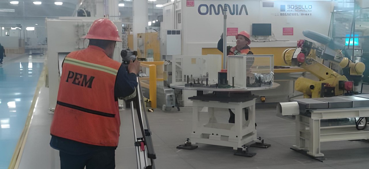 Leveling and alignment of machinery equipment, workers trained with special tools, precision levels, optical levels, laser level and total station, etc.